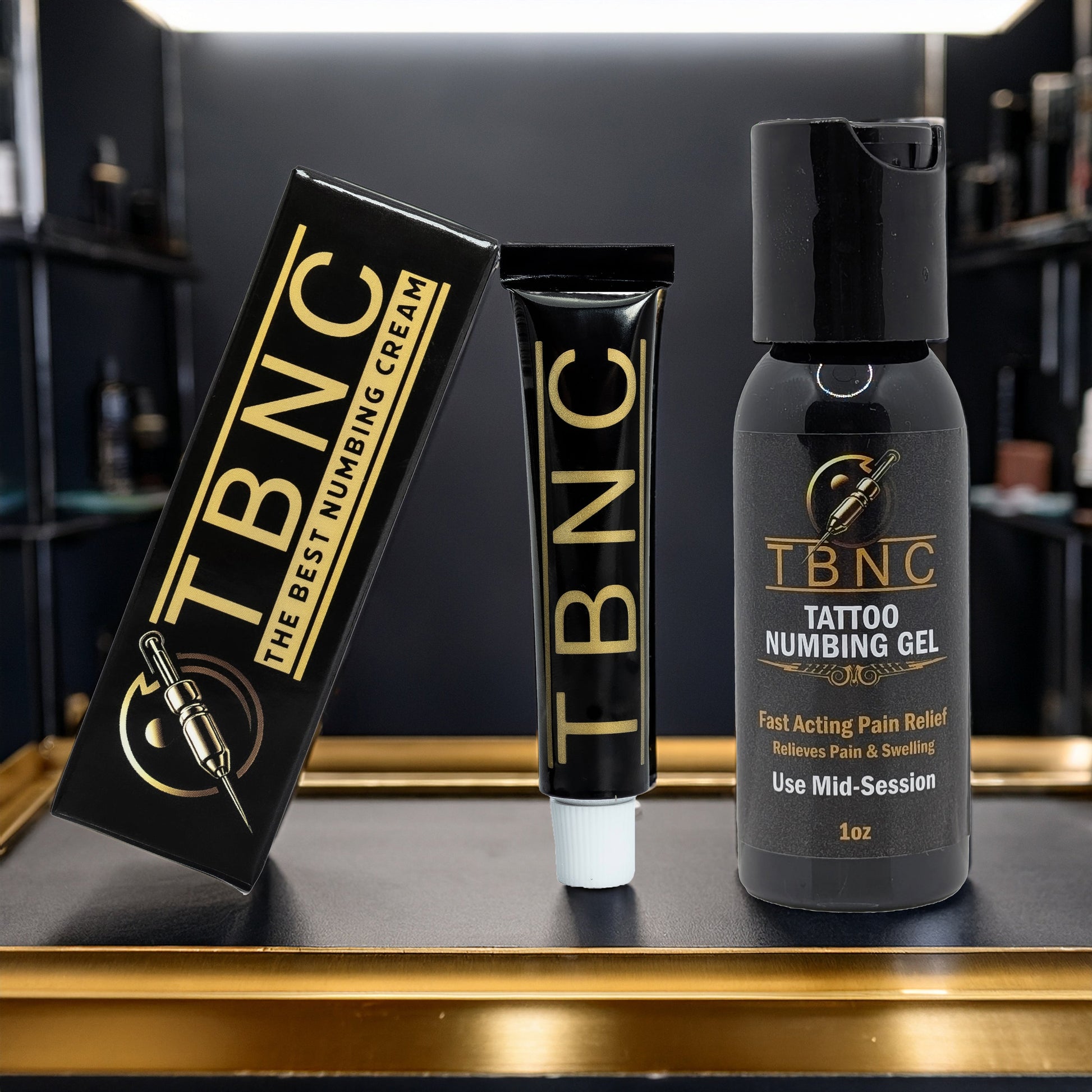 Take the pain out of the tattoo process with our Tattoo Numbing Bundle, featuring Tattoo Numbing Cream and Tattoo Numbing Gel for complete, all-day relief. Whether you're preparing for your next tattoo session or need fast-acting comfort mid-ink, this bundle has you covered.